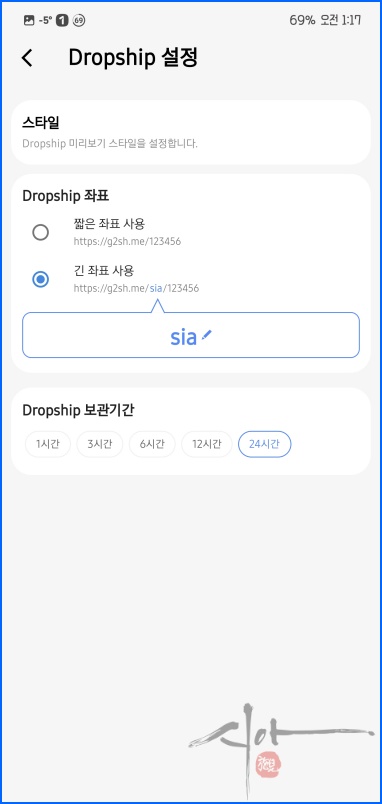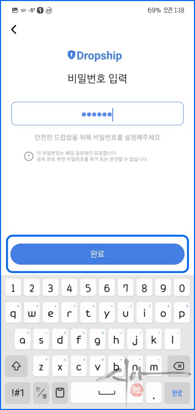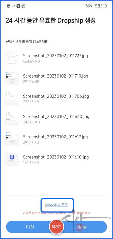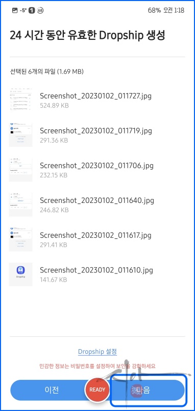 'Dropship 설정'으로 비밀번호를 설정할 수 있다