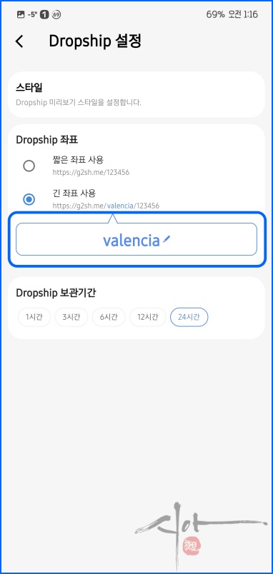 간단히 스타일, 좌표, 보관기간 설정이 가능하다