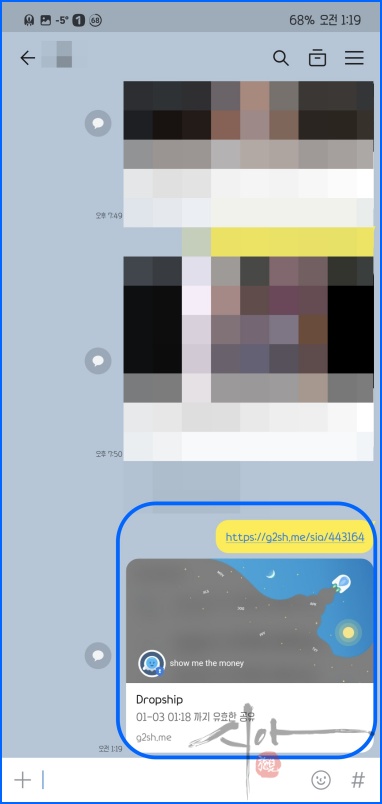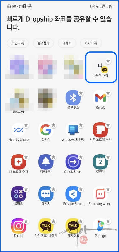 '앱으로 URL 공유'를 클릭하여 카카오톡으로 보내보았다