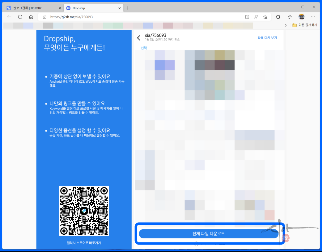 카톡으로 온 메시지를 클릭하면 다운로드가 가능하다