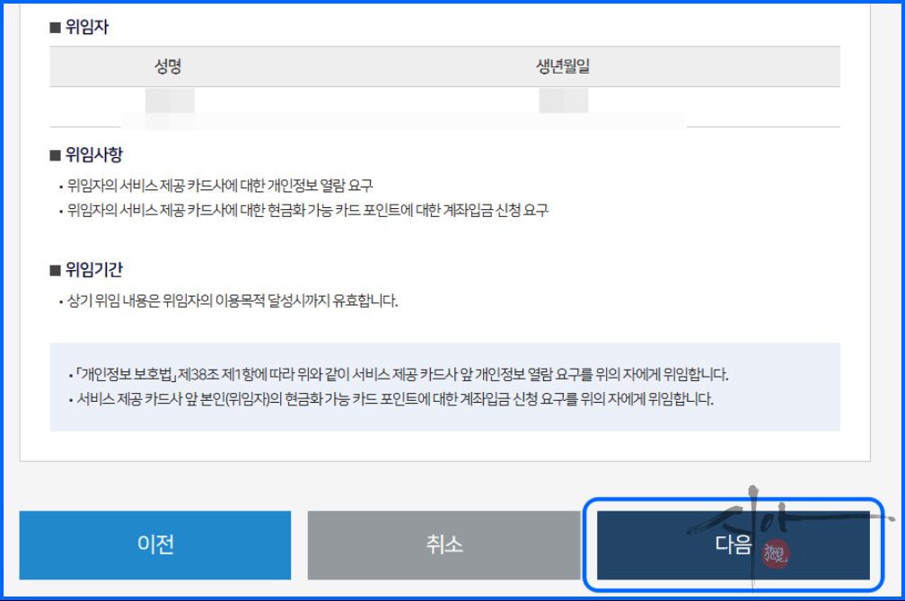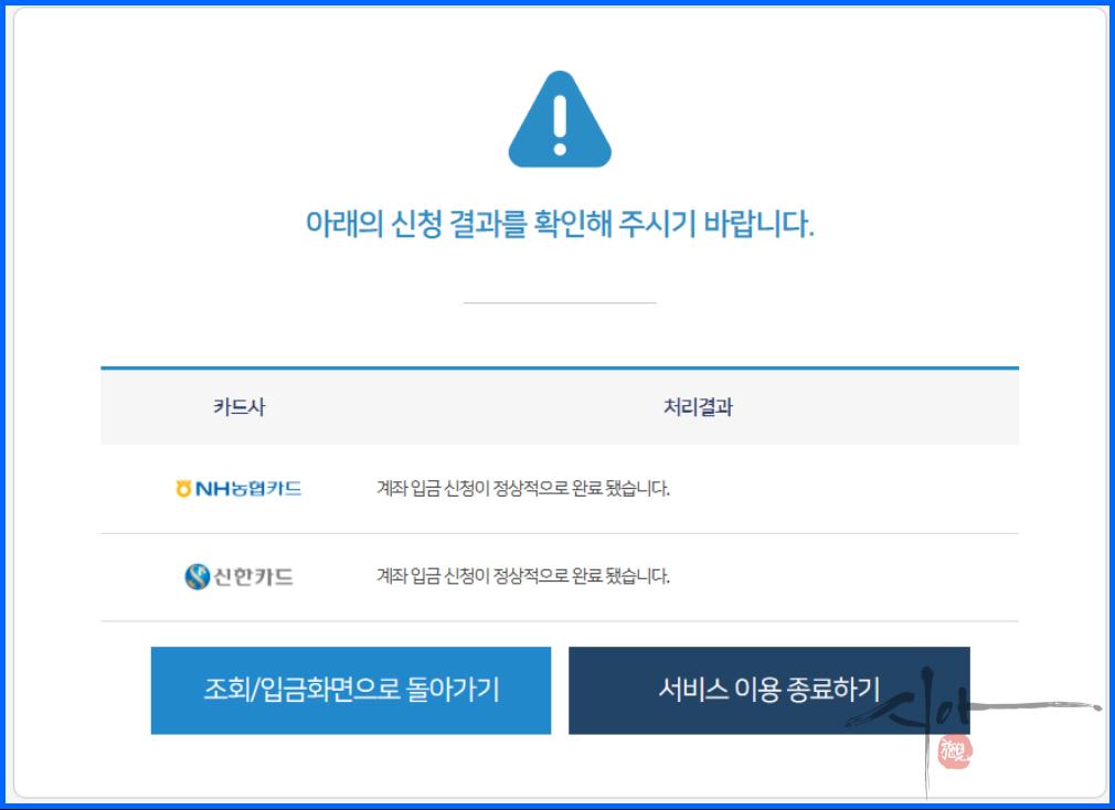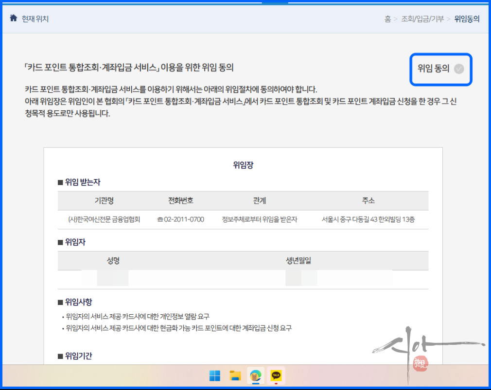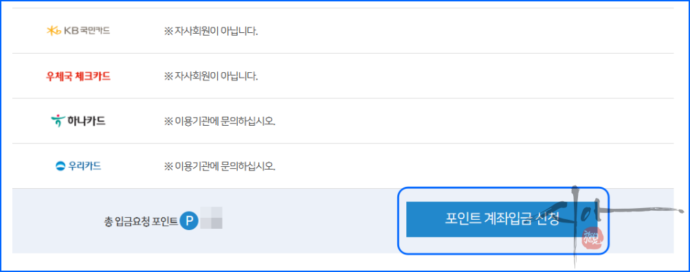 여신금융협회 카드포인트 통합조회 계좌입금