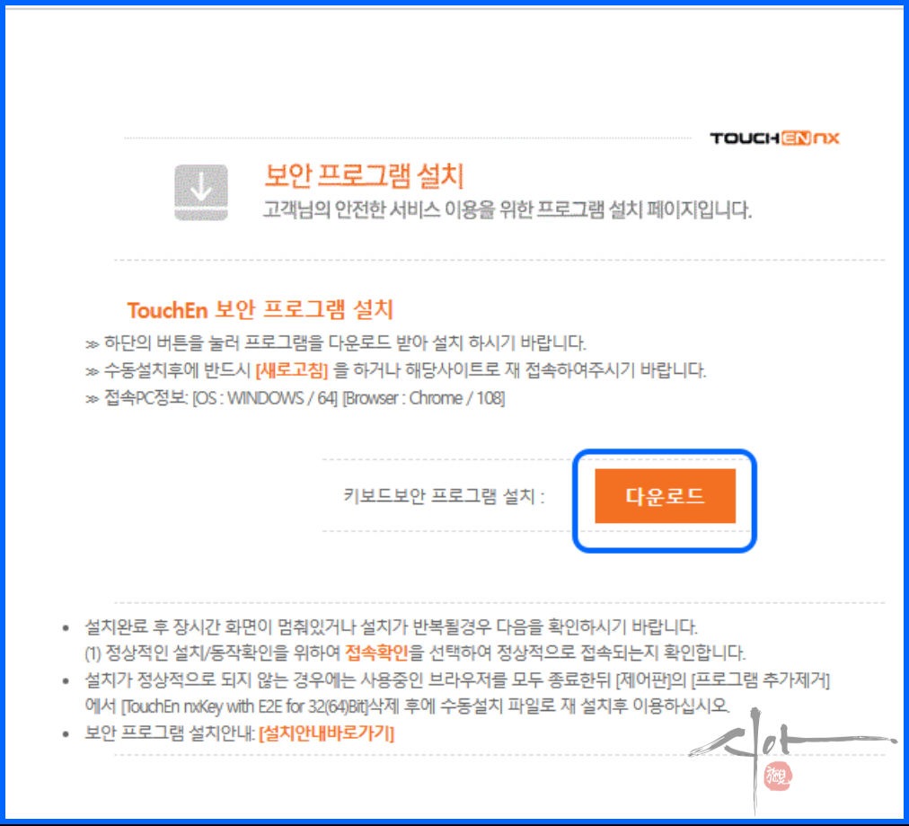 키보드보안 프로그램을 설치해야 한다