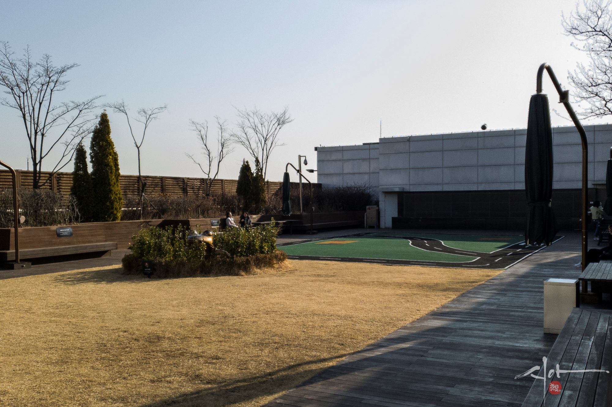 롯데백화점 옥상에는 쉴 수 있는 공간이 조성 되어 있다