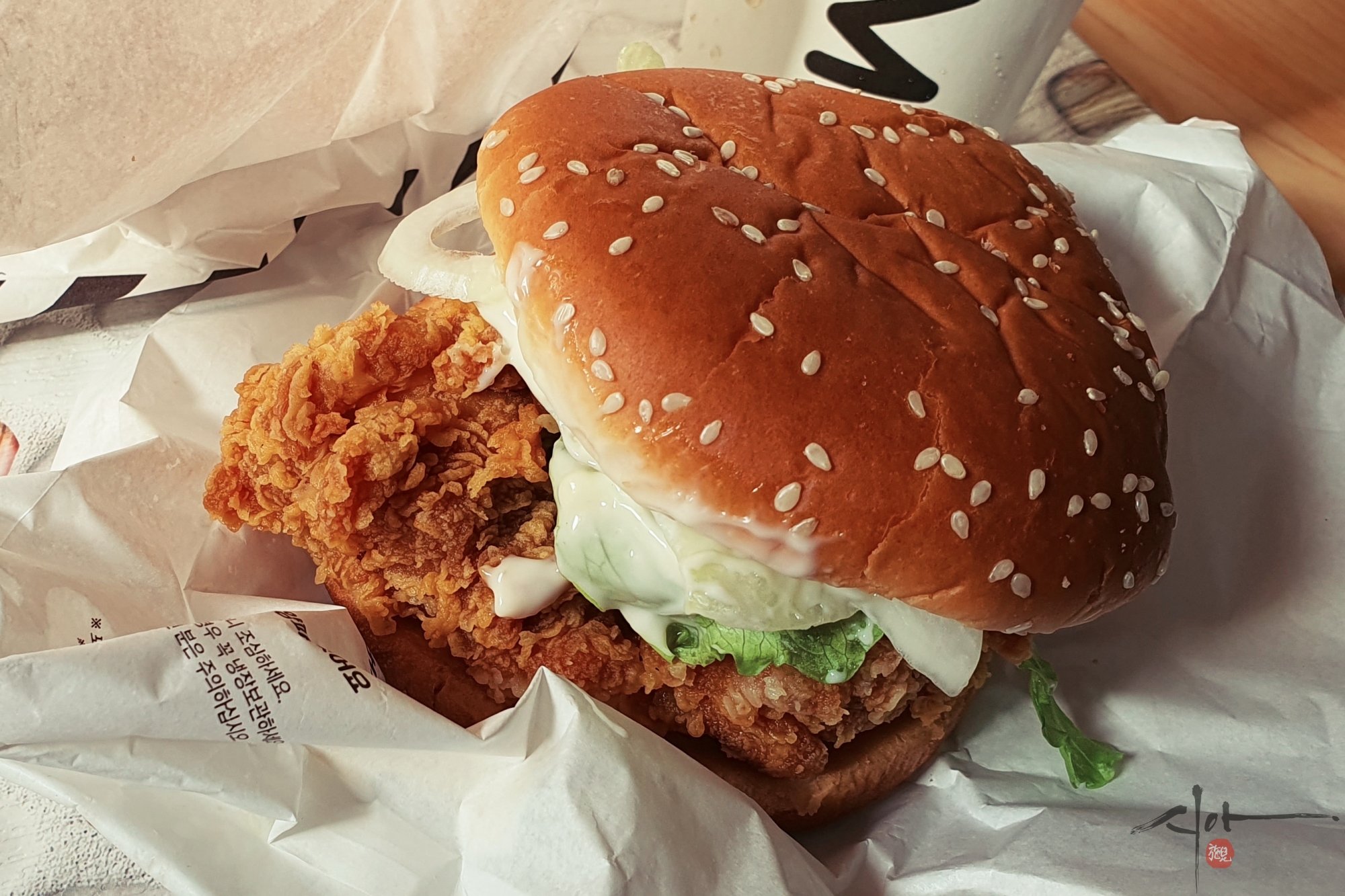 맘스터치는 치킨 패티가 결데로 찢겨서 좋아한다