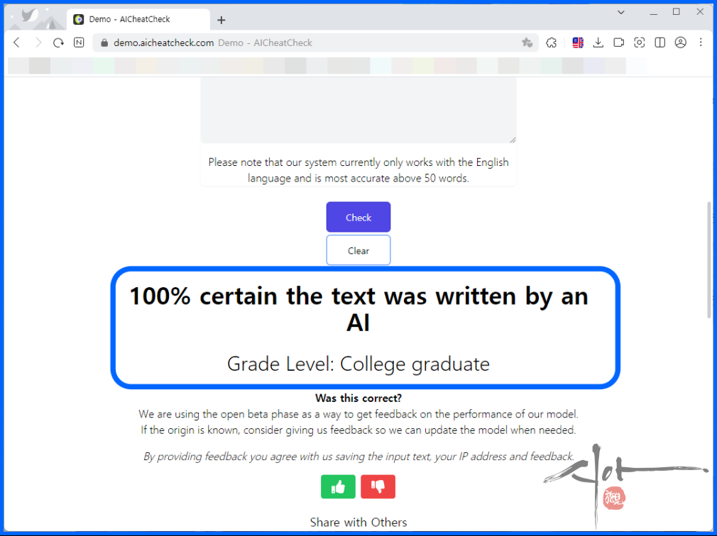 AI가 작성하였지만 사람이라는 결과가 나오기도 한다