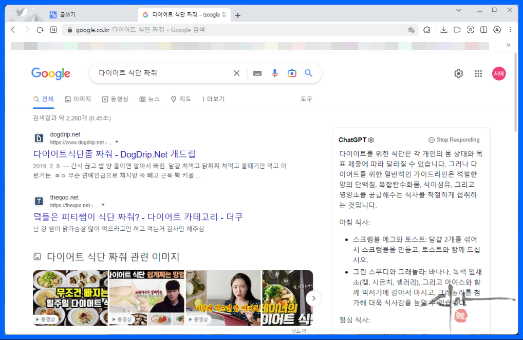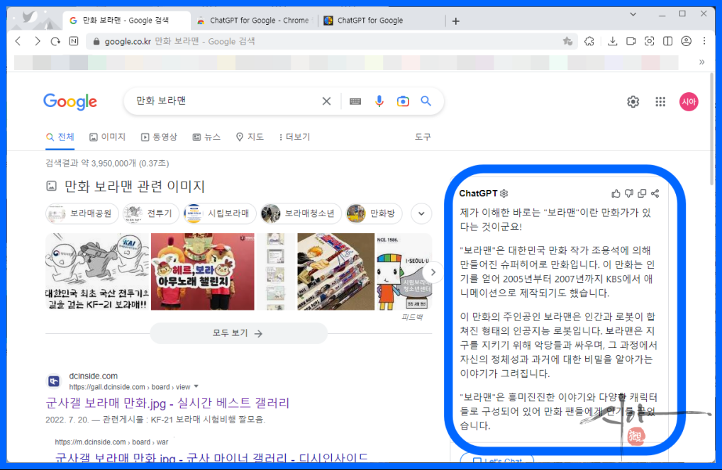 검색결과에 ChatGPT의 답변까지 볼 수 있다