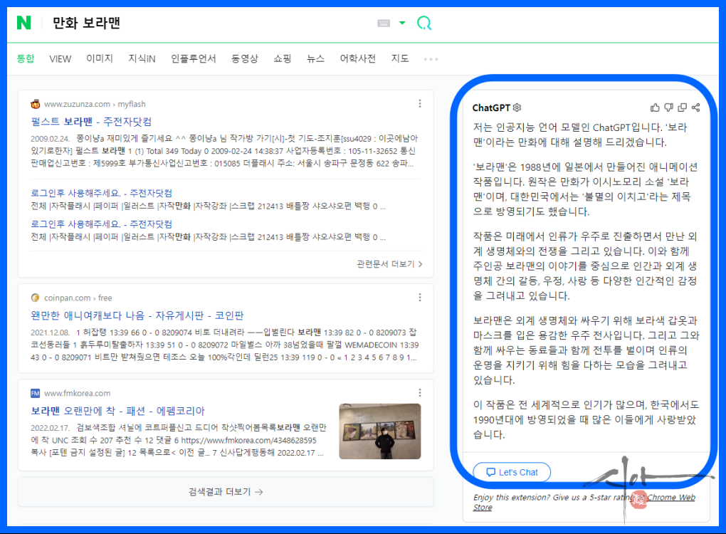 네이버에서 찾지 못한 결과를 ChatGPT가 대답해 준다