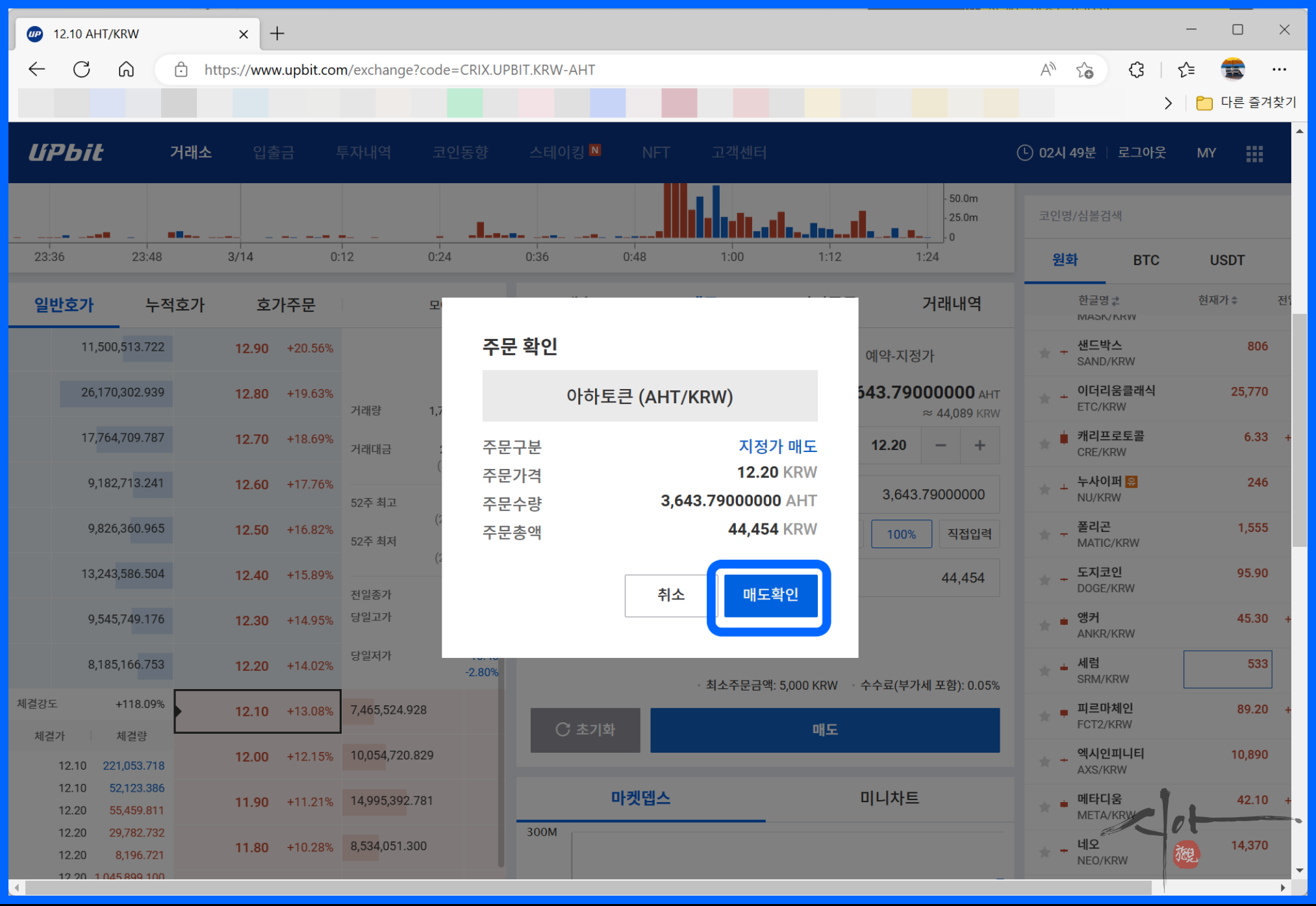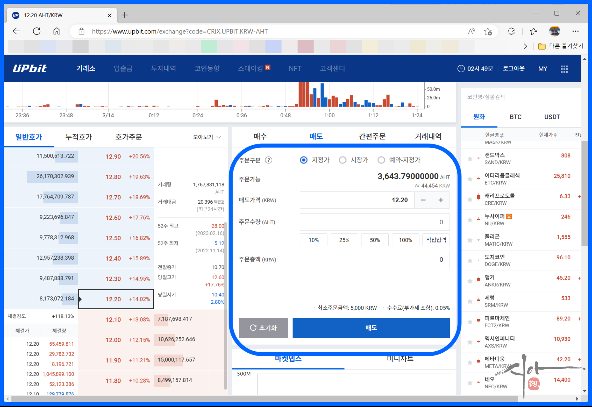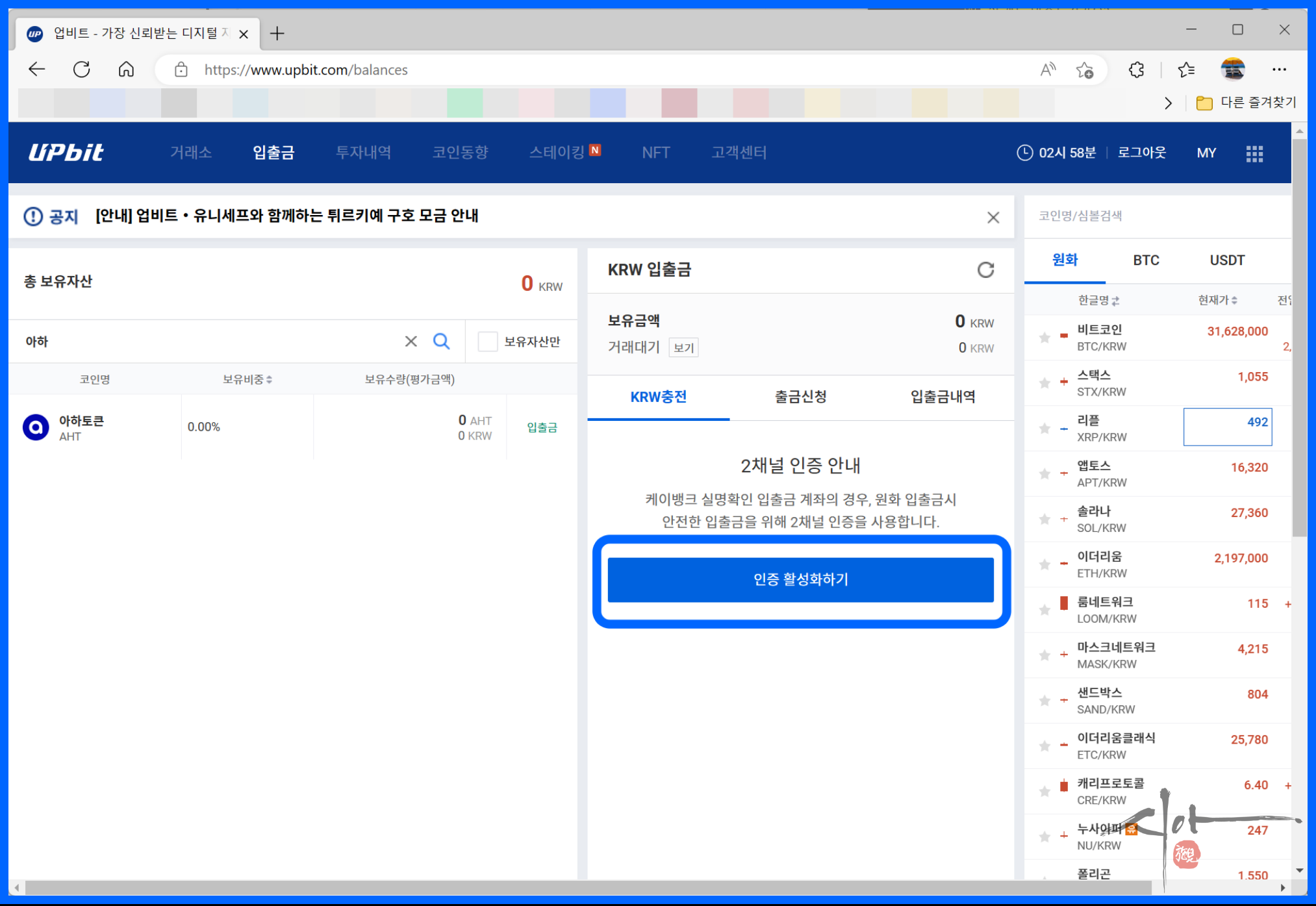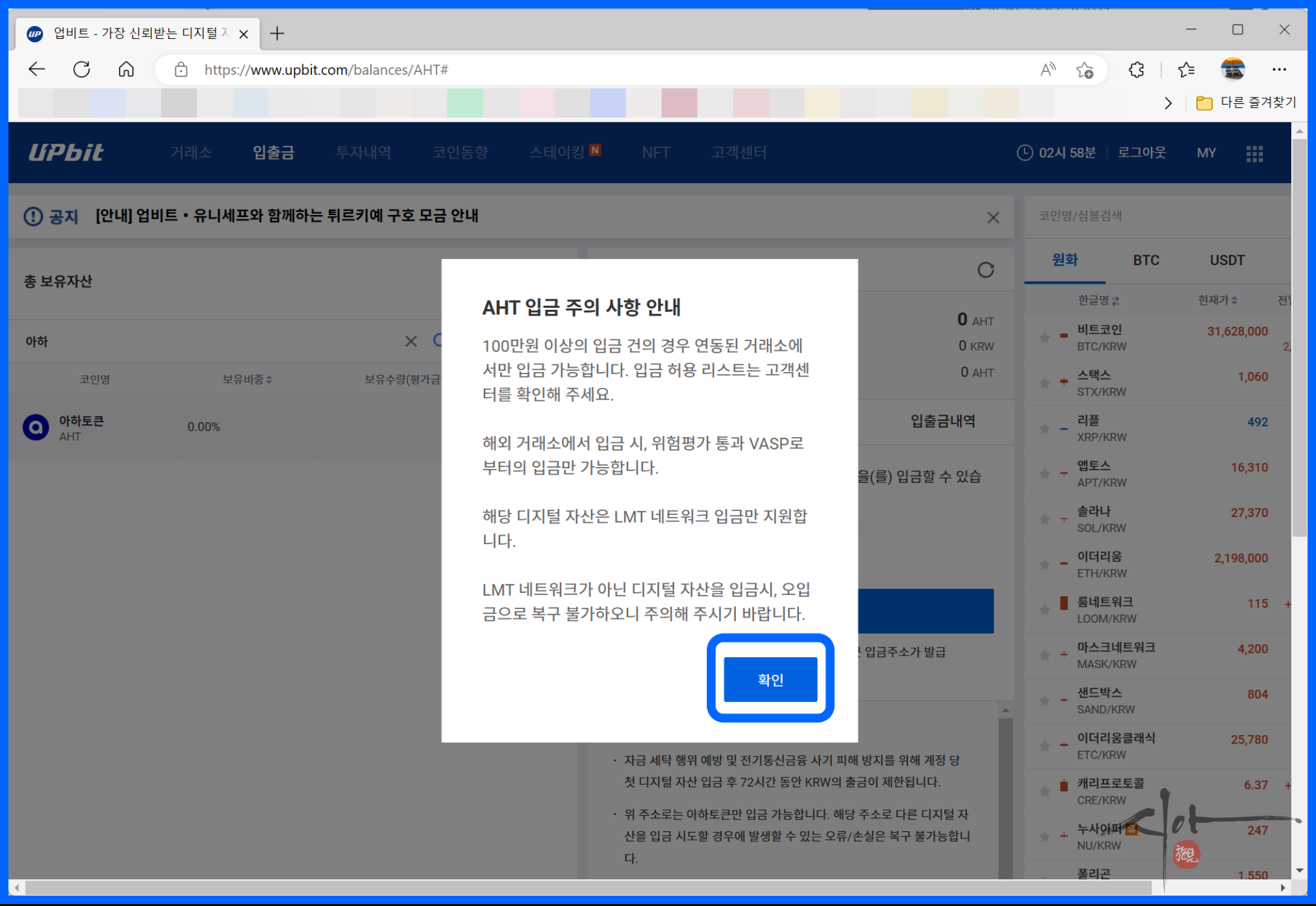 아하 코인은 업비트 거래소에서 가능하다