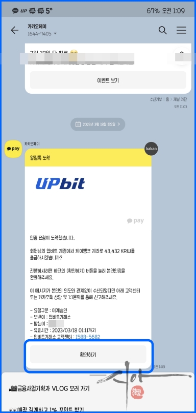 카카오페이에서 톡이 왔다
