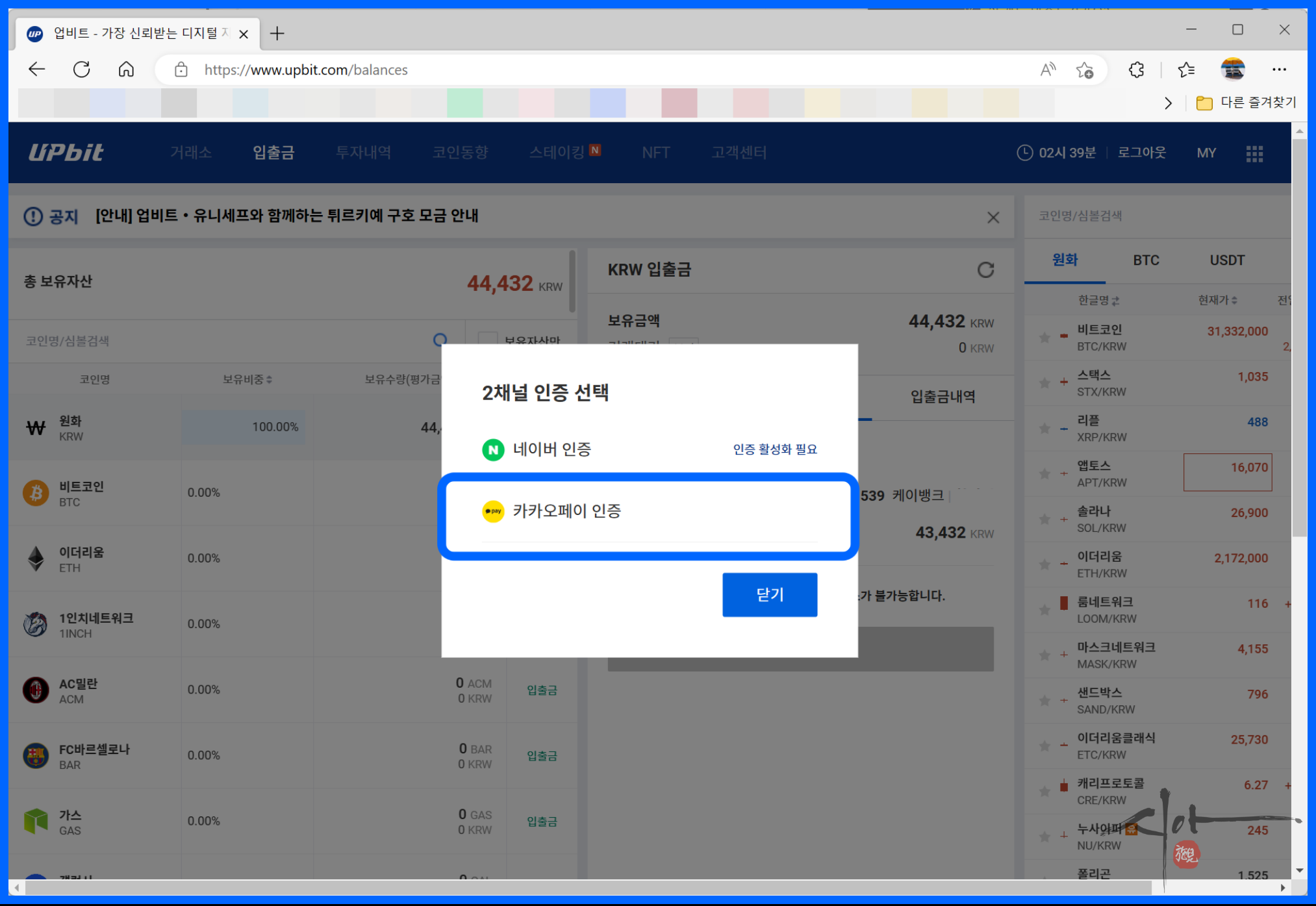 업비트 앱에 접속한다