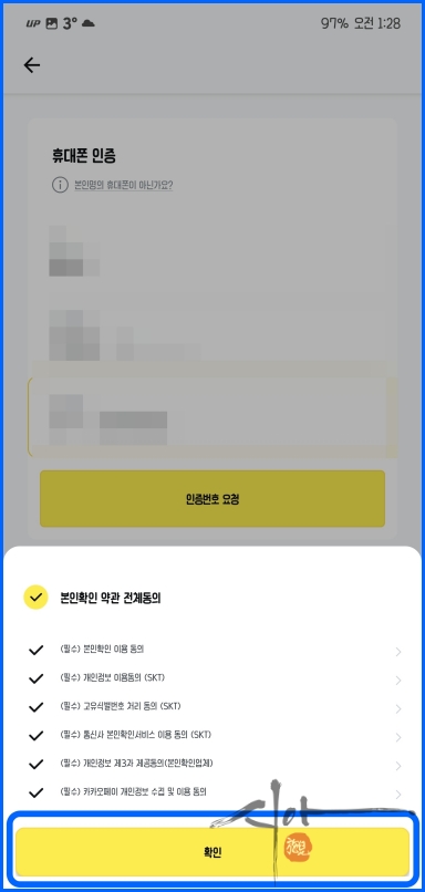 '본인확인 약관 전체동의' 체크 후