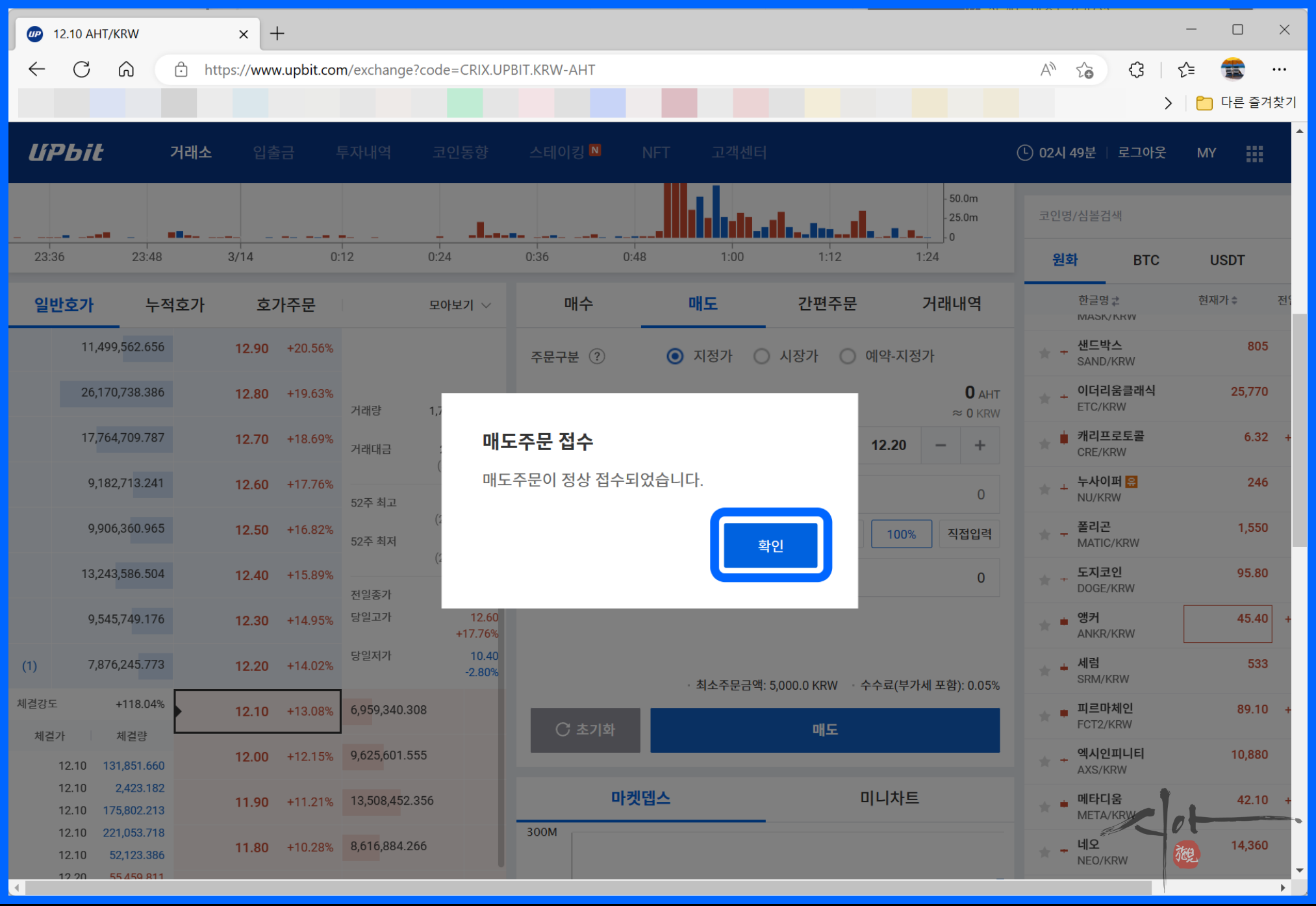 매도 주문이 정상적으로 되었다