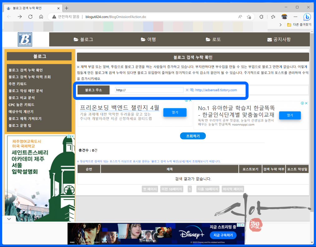블로그 주소만을 입력하여 네이버 또는 다음에서 포스트가 검색 누락이 되고 있는지를 확인하는 사이트. 검색 누락을 확인하여 블로그의 검색 유입을 효과적으로 늘릴 수 있다. 부지런하다면