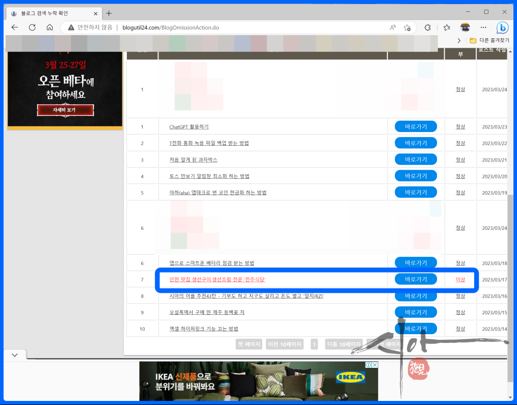 누락되는 글이 점점 쌓이다 보면 저품질 블로그가 될 수 있다는 거 같은데