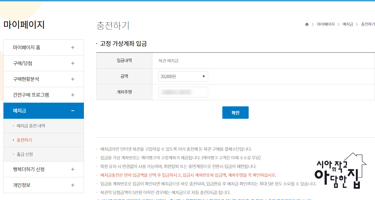 고정 가상계좌로 입금하면 된다