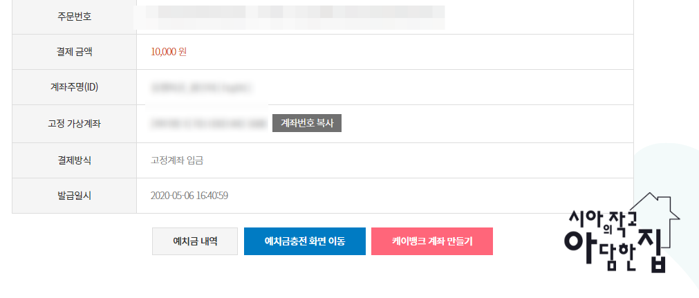 가상계좌가 나오고 아까 선택 한 금액을 입금 하면 된다