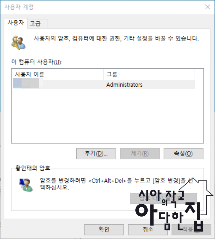 '사용자 이름과 암호를 입력해야 이 컴퓨터를 사용할 수 있음(E)' 체크박스가