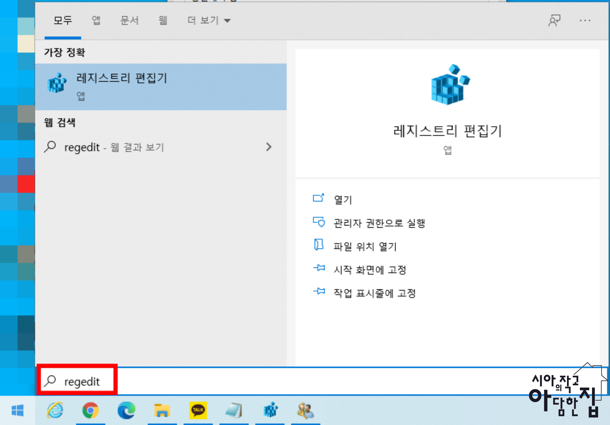 'regedit' 입력하여 레지스트리 실행