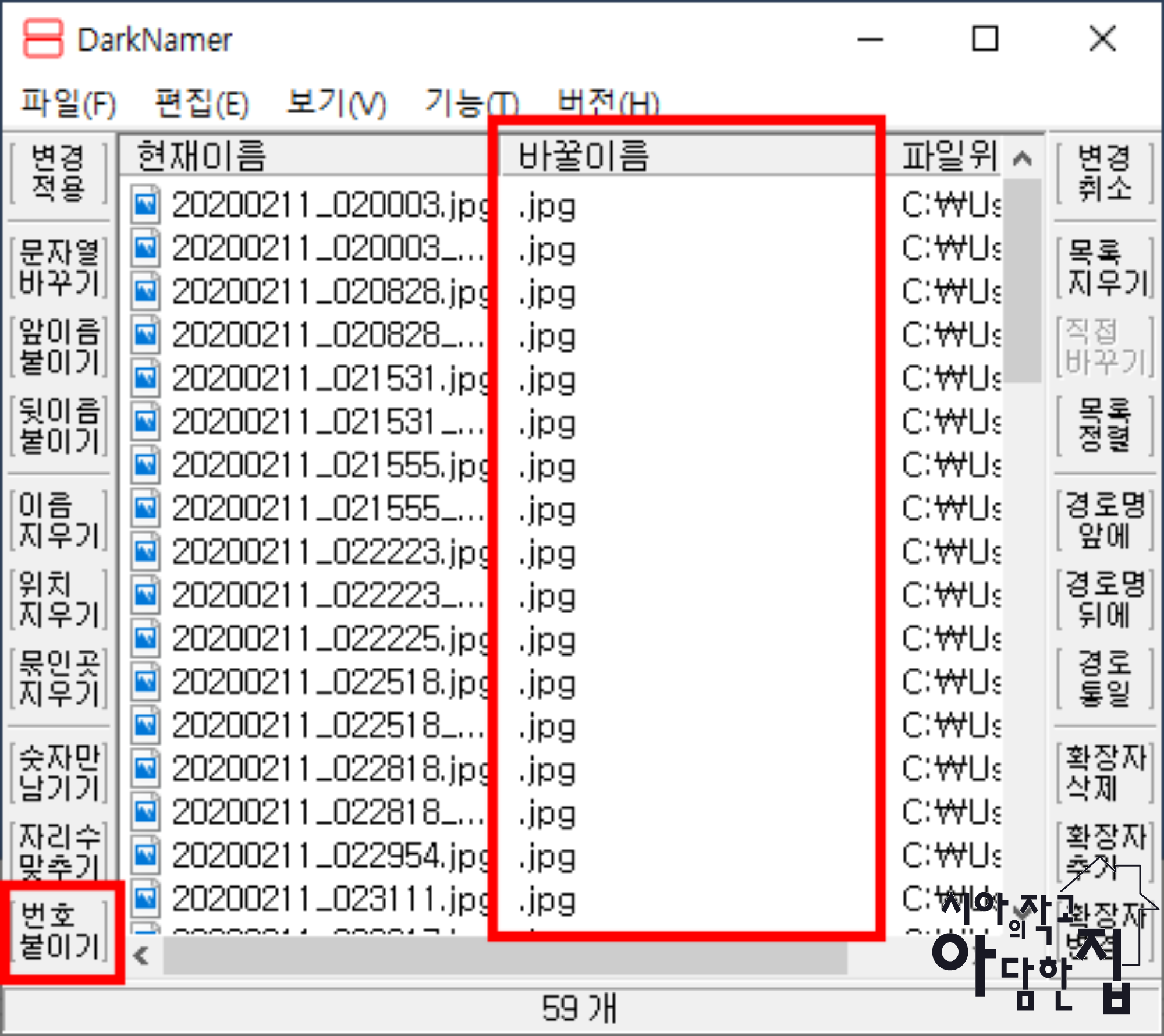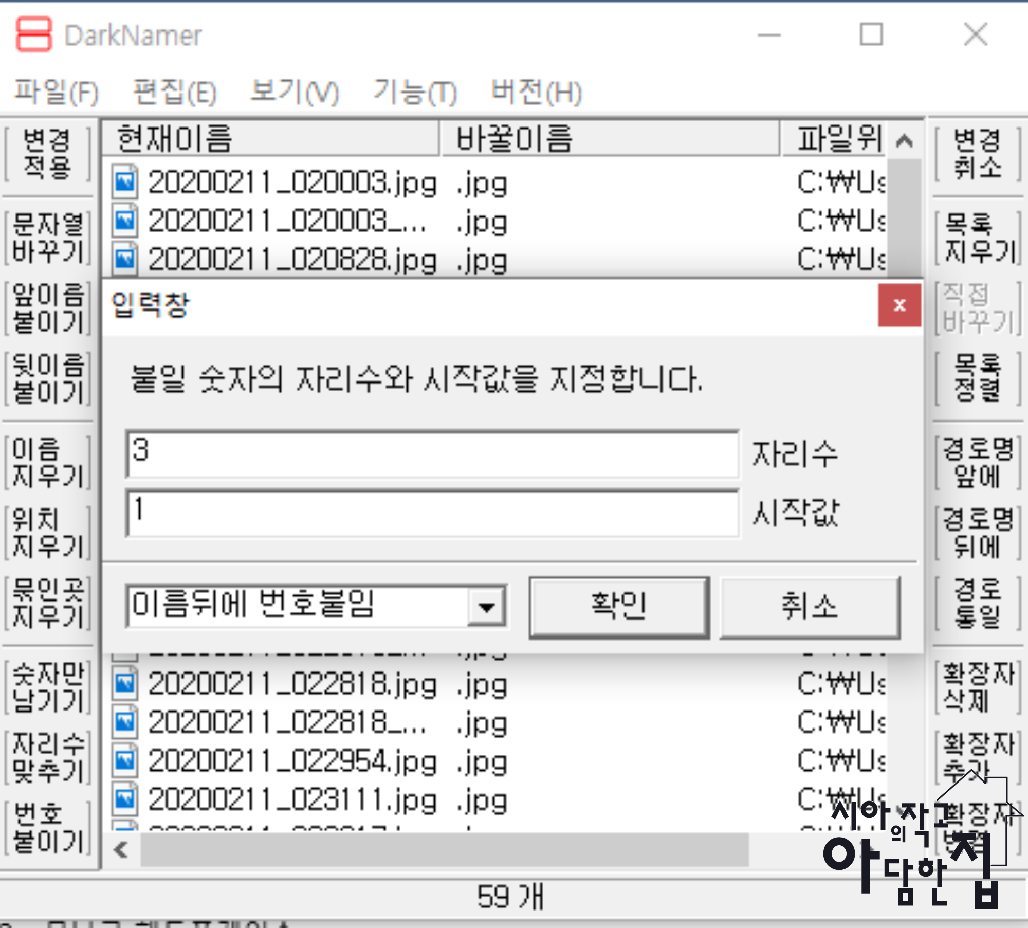 그럴 경우 필자는 DaekName 파일로 사진 이름을 전부 변경해서