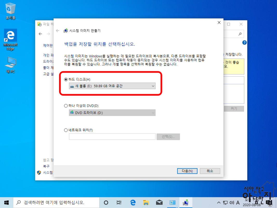 백업 장소를 자동으로 선택되지만, 하드가 여러 개이신 분은 직접 선택