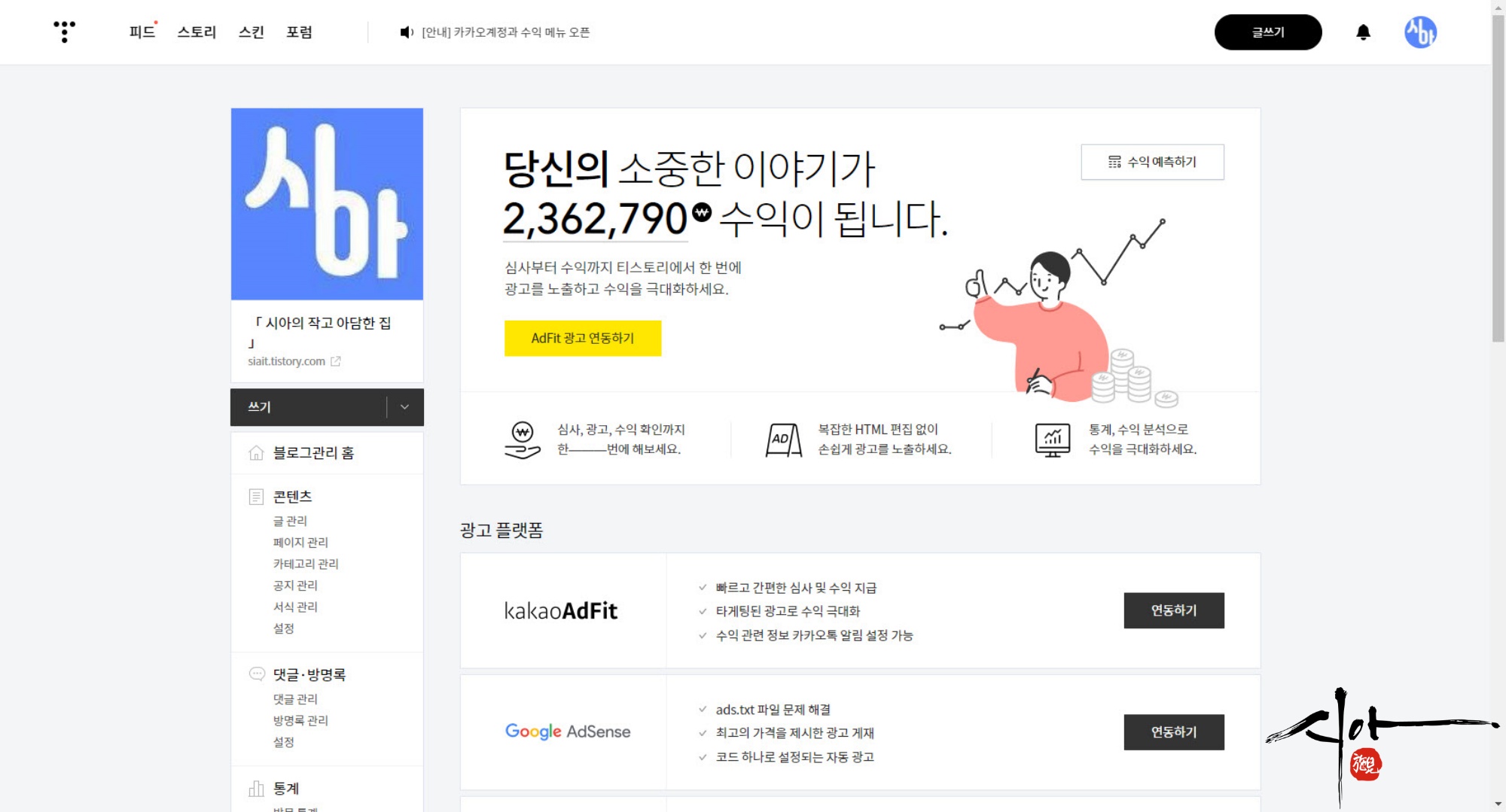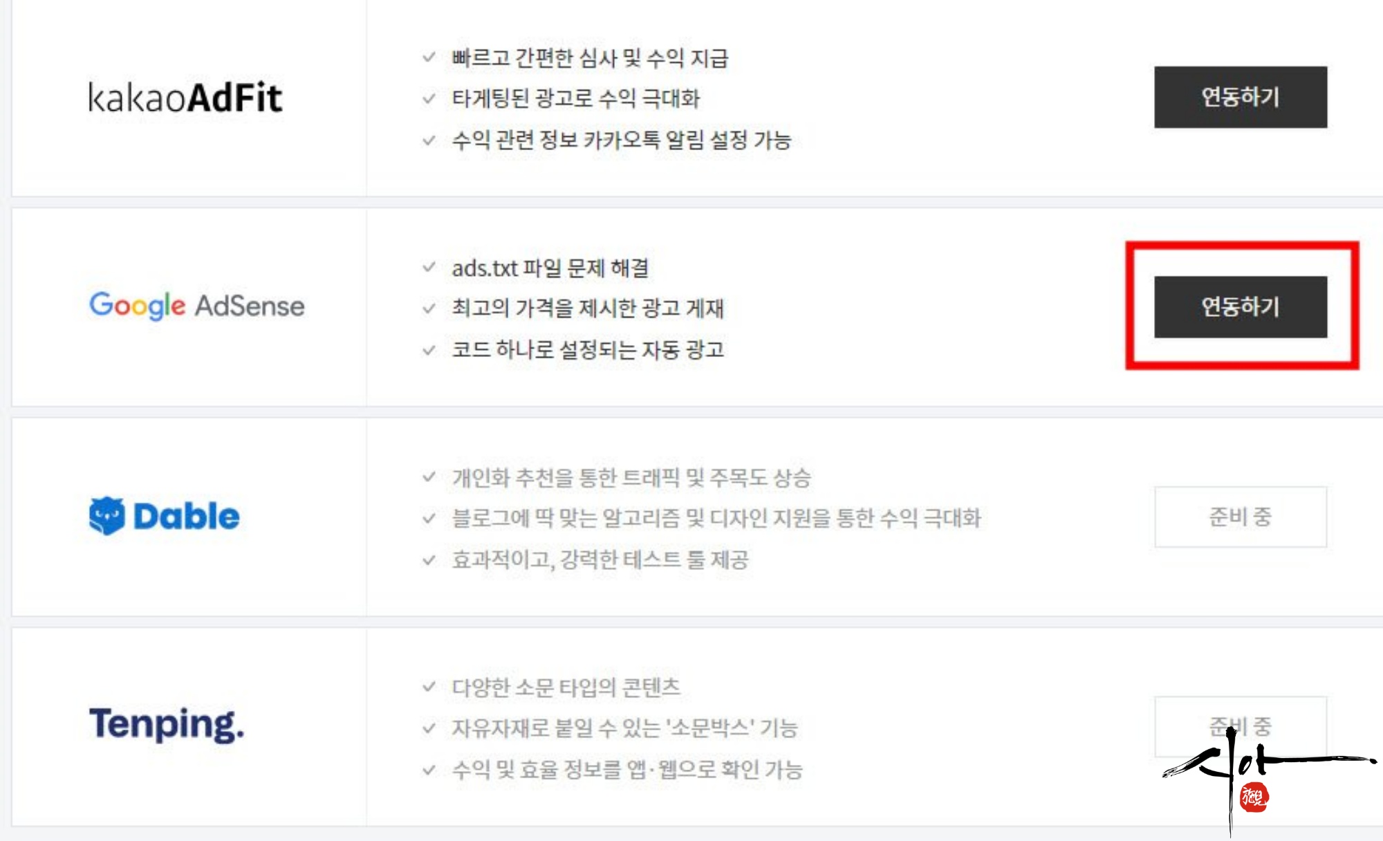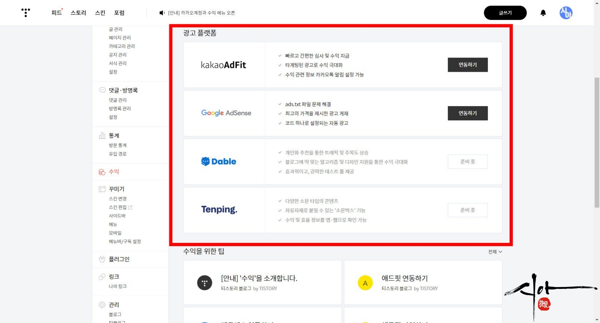 아직은 카카오 애드 핏과 구글 애드센스뿐이 안된다