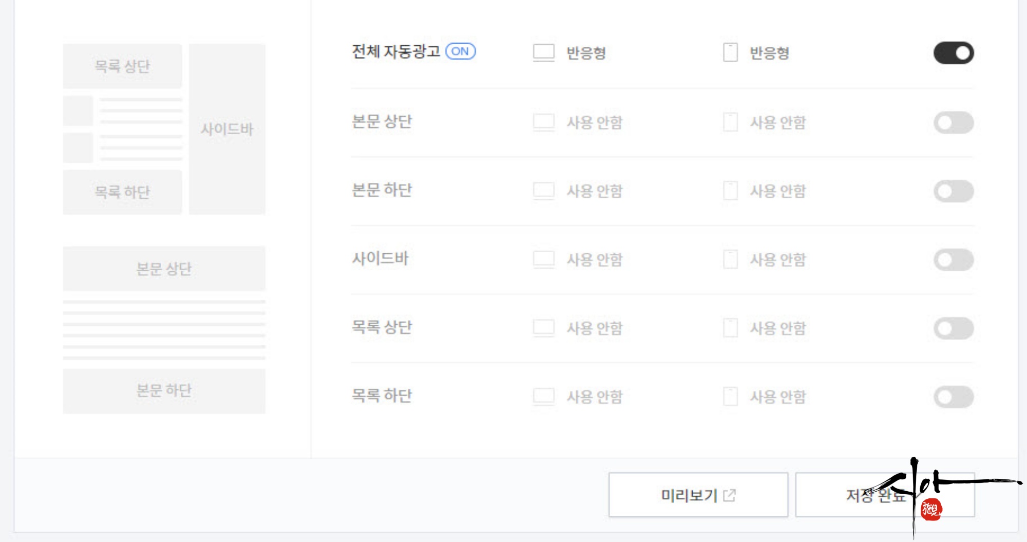 " 전체 자동광고 " 설정하니 아무것도 안 나온다?