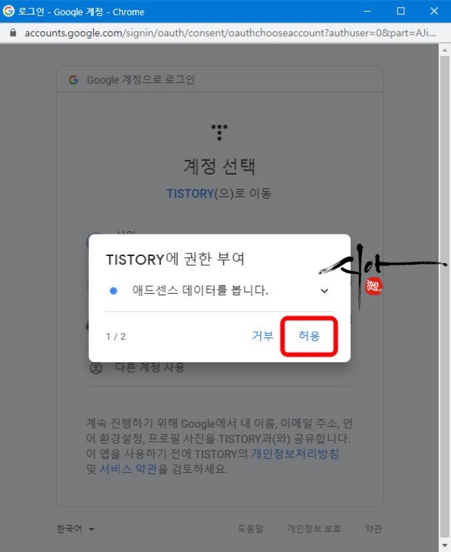 계정을 선택