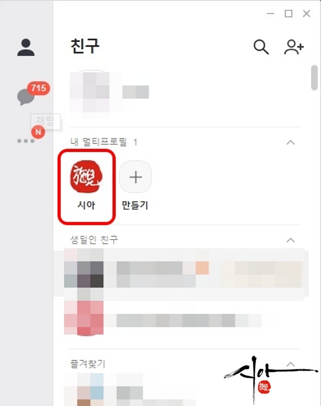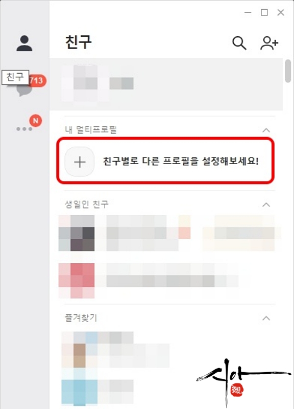 카카오톡 프로필 밑 , 생일인 친구 위에 " 내 멀티프로필 "이 있다