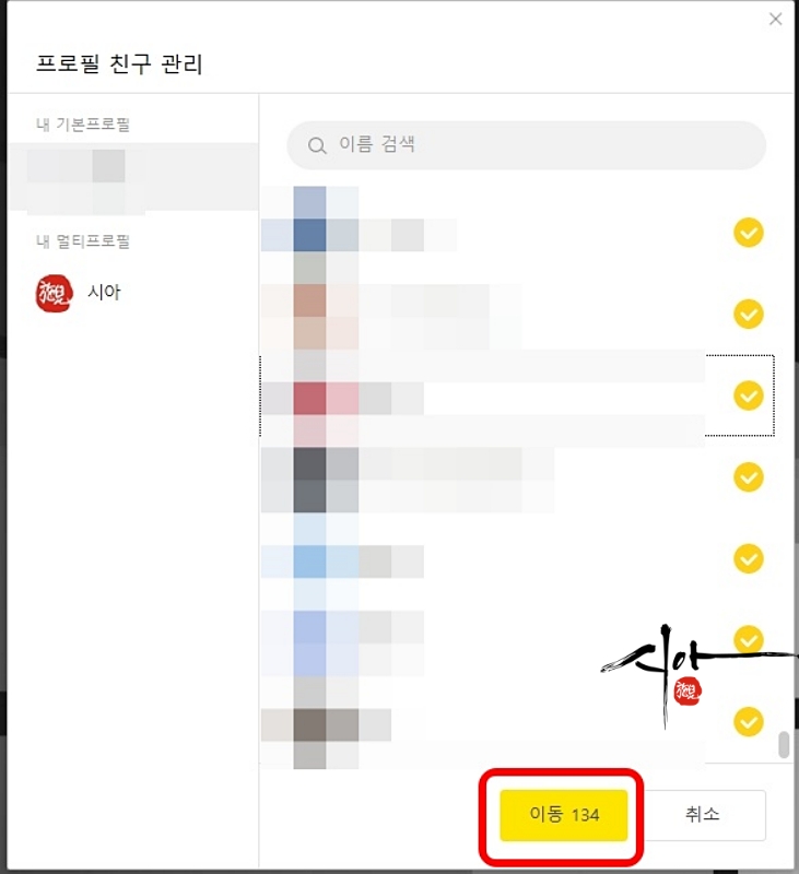 친구가 뜨고 새로 만든 프로필을 노출하고 싶은 친구들을 선택한다