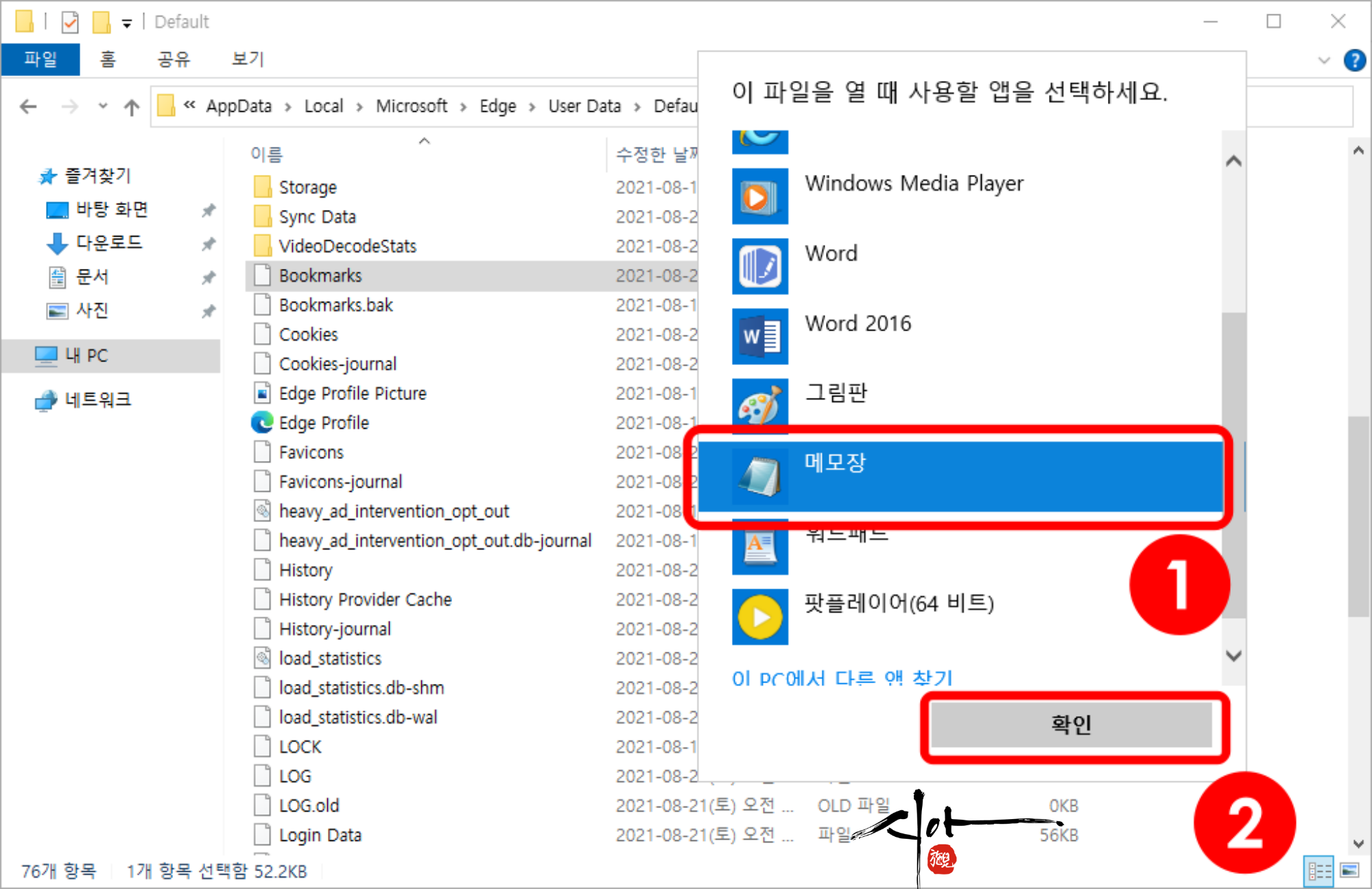 스크롤을 내리다 보면 "BookMarks"파일이 보인다