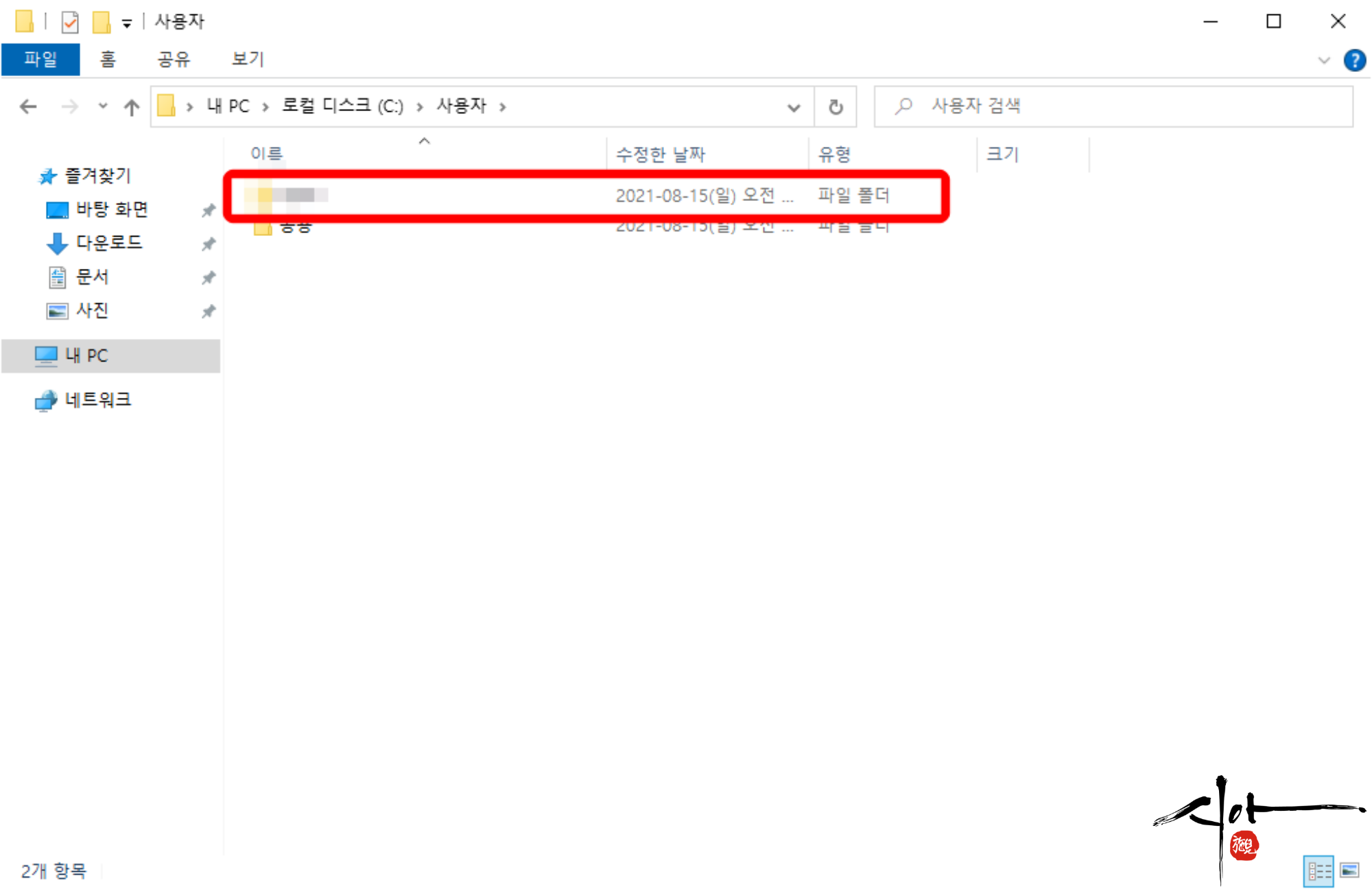 현재 윈도우에 로그인되어 있는 계정 폴더 더블클릭