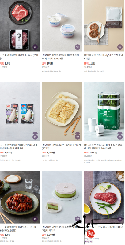 마켓컬리에 신규 가입하니 100원에 살 수 있는 이벤트가 있다