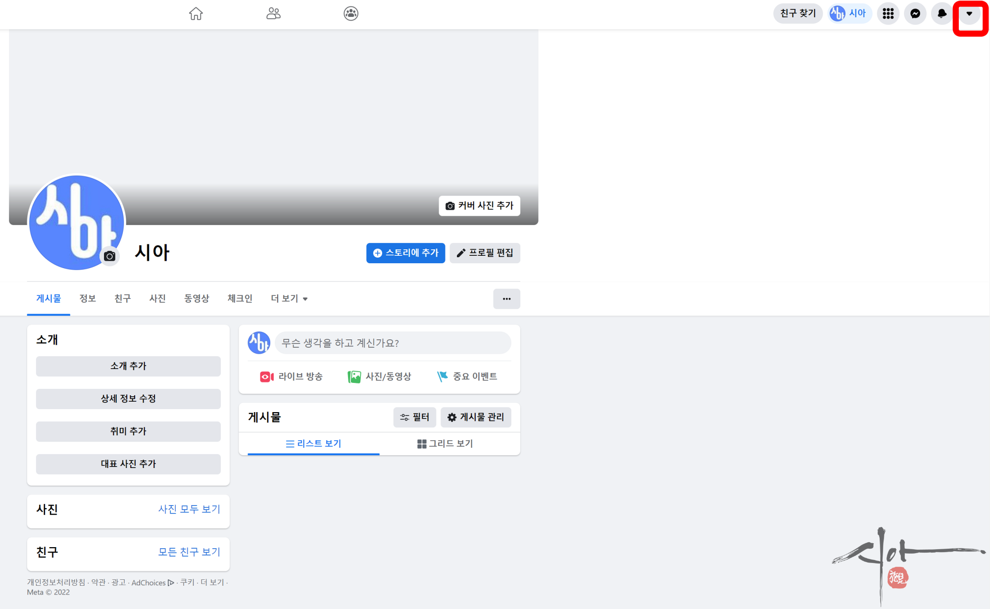 블로그에 페이스북 주소를 올려야 하는데 주소를 몰라